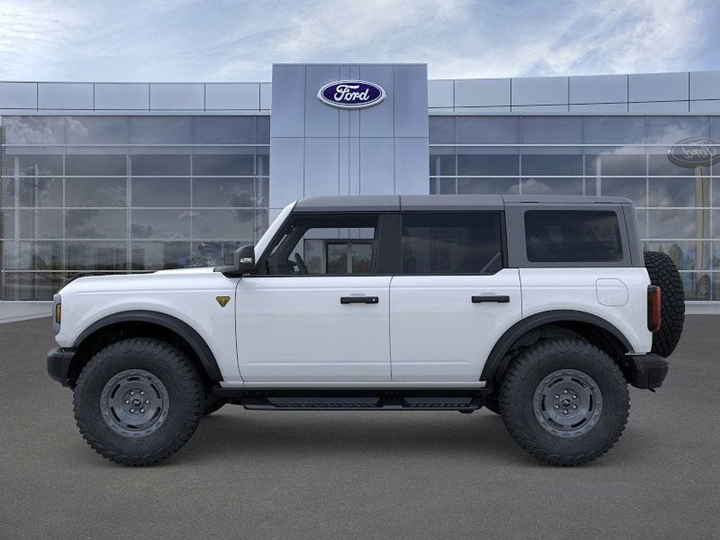 Oxford White 2025 Ford Bronco Badlands 4WD 10-Speed Automatic 2.7L EcoBoost V6 2-Door Intelligent Access w/Lock/Unlock, 360-Degree Camera, 4-Wheel Disc Brakes, 7 Speakers, ABS brakes, Adaptive Cruise Control, Air Conditioning, Alloy wheels, AM/FM radio: SiriusXM with 360L, AM/FM Stereo, Ambient Footwell Lighting, Auto High-Beam Headlamps, Auto High-beam Headlights, Auto-dimming Rear-View mirror, BLIS Blind Spot Information System, Brake assist, Carbonized Gray Molded-In-Color Hard Top, Compass, Connected Navigation, Delay-off headlights, Dr & Pass Illuminated Sliding Visor Vanity Mirrors, Driver door bin, Driver vanity mirror, Dual front impact airbags, Dual front side impact airbags, Dual Smart Charging USB Ports, Dual-Zone Electronic Automatic Temperature Control, Electronic Stability Control, Emergency communication system: 911 Assist, Equipment Group 334A Lux Package, Evasive Steering Assist, Exterior Parking Camera Rear, Front & Rear Floor Liners w/o Carpet Floor Mats, Front anti-roll bar, Front Bucket Seats, Front Center Armrest, Front fog lights, Front License Plate Bracket, Front Parking Sensors, Front reading lights, Front Row Heated Seats, Front wheel independent suspension, Fully automatic headlights, Hard Top Sound Deadening Headliner, Heated door mirrors, Heated front seats, Heated steering wheel, High Clearance Fender Flares, High Clearance Suspension, Illuminated entry, Information on Demand Panel, Integrated roll-over protection, Internet access capable: FordPass Connect, Lane-Keeping System, Leather Shift Knob, Leather-Trimmed/Vinyl Bucket Seats, Low tire pressure warning, Marine Grade Vinyl Heated Bucket Seats, Occupant sensing airbag, Outside temperature display, Overhead airbag, Overhead console, Panic alarm, Passenger door bin, Passenger vanity mirror, Position-Sensitive Bilstein Shock Absorbers, Power door mirrors, Power Outlet - Back Side of Center Floor Console, Power steering, Power windows, Pre-Collision Assist w/Automatic Emergency Braking, Radio data system, Radio: B&O Sound System by Bang & Olufsen, Raptor-Style Running Board, Rear Parking Sensors, Rear-View Camera, Rear-Window Defroster & Washer, Remote keyless entry, Sasquatch Package, Security system, Sideview Mirrors, SiriusXM w/360L, Speed control, Split folding rear seat, Steering wheel mounted audio controls, SYNC 4, Tachometer, Telescoping steering wheel, Tilt steering wheel, Traction control, Trailer Tow Package (DIO), Trip computer, Universal Garage Door Opener, Variably intermittent wipers, Voltmeter, Wheels: 17" Carbonized Gray Painted Aluminum, Wheels: 17" Carbonized Gray-Painted Aluminum. Price includes: $1000 - Final Days Mega Bonus Cash. Exp. 01/02/2026 $1500 - Bonus Customer Cash. Exp. 01/05/2026