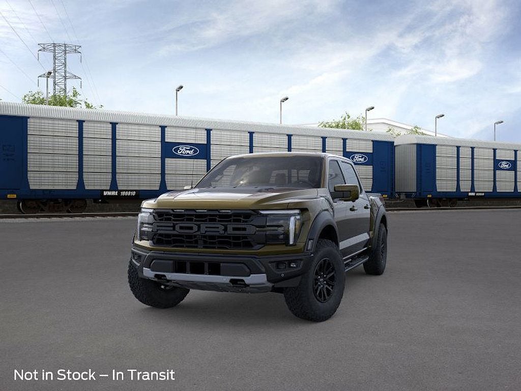 Green 2026 Ford F-150 Raptor 4WD 10-Speed Automatic 3.5L V6 EcoBoost High Output 4WD, 14 Speakers, 17" Cast Aluminum Wheels, 4-Wheel Disc Brakes, ABS brakes, Adjustable pedals, Air Conditioning, Alloy wheels, AM/FM radio: SiriusXM with 360L, Auto High-beam Headlights, Auto tilt-away steering wheel, Auto-dimming door mirrors, Auto-dimming Rear-View mirror, Automatic temperature control, Brake assist, Bumpers: body-color, Compass, Delay-off headlights, Driver door bin, Driver vanity mirror, Dual front impact airbags, Dual front side impact airbags, Electronic Locking with 4.10 Axle Ratio, Electronic Stability Control, Emergency communication system: SYNC 4 911 Assist, Ford Connectivity Package (1-Year Included), Front anti-roll bar, Front Bucket Seats, Front Center Armrest, Front dual zone A/C, Front fog lights, Front reading lights, Front wheel independent suspension, Fully automatic headlights, Garage door transmitter, Heated door mirrors, Heated front seats, Heated rear seats, Heated steering wheel, Illuminated entry, Internet access capable: 5G Modem - Ford Connectivity Package, Lane Departure Warning System, Leather steering wheel, Leather Trimmed Seats, Low tire pressure warning, Memory seat, Navigation system: Connected Navigation, Occupant sensing airbag, Outside temperature display, Overhead airbag, Overhead console, Panic alarm, Passenger door bin, Passenger vanity mirror, Pedal memory, Power door mirrors, Power driver seat, Power passenger seat, Power steering, Power windows, Radio data system, Radio: B&O Unleashed Sound System by Bang & Olufsen, Rain sensing wipers, Rear reading lights, Rear step bumper, Rear window defroster, Remote keyless entry, Security system, Speed control, Speed-sensing steering, Split folding rear seat, Steering wheel memory, Steering wheel mounted audio controls, SYNC 4 with Enhanced Voice Recognition, Tachometer, Telescoping steering wheel, Tilt steering wheel, Traction control, Trip computer, Turn signal indicator mirrors, Variably intermittent wipers, Ventilated front seats, 4WD.