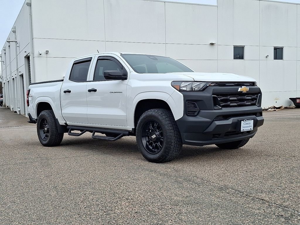Clean CARFAX.2023 Chevrolet Colorado Work Truck Summit White 4WD 8-Speed Automatic 2.7L Turbo4WD, 3.42 Rear Axle Ratio, 4-Way Manual Passenger Seat Adjuster, 4-Wheel Disc Brakes, 6 Speakers, 6-Speaker Audio System Feature, 6-Way Manual Driver Seat Adjuster, 8-Way Power Driver Seat Adjuster, ABS brakes, Air Conditioning, AM/FM radio: SiriusXM, Apple CarPlay/Android Auto, Auto High-beam Headlights, Automatic Emergency Braking, Brake assist, Chevy Safety Assist, Cloth Seat Trim, Delay-off headlights, Driver door bin, Driver vanity mirror, Dual front impact airbags, Dual front side impact airbags, Electronic Automatic Cruise Control, Electronic Stability Control, EZ-Lift & Lower Tailgate, Following Distance Indicator, Forward Collision Alert, Front anti-roll bar, Front Bucket Seats, Front Center Armrest, Front Floor Console Compartment w/Cup Holders, Front License Plate Kit, Front Pedestrian & Bicyclist Braking, Front wheel independent suspension, IntelliBeam Automatic High Beam On/Off, Lane Keep Assist w/Lane Departure Warning, Low tire pressure warning, Manual Rear-Sliding Window, Navigation System, Occupant sensing airbag, Overhead airbag, Panic alarm, Passenger door bin, Passenger vanity mirror, Power door mirrors, Power Driver Lumbar Control Seat Adjuster, Power steering, Power windows, Preferred Equipment Group 4WT, Radio data system, Radio: 11.3 Diagonal Advanced Color LCD Display, Rear Air Vents, Rear step bumper, Rear-Window Electric Defogger, Remote keyless entry, Remote Locking Tailgate, Security system, SiriusXM Radio, Speed-sensing steering, Split folding rear seat, Steering Wheel Mounted Audio Controls, Steering wheel mounted audio controls, StowFlex Tailgate Storage Compartment, Tachometer, Tailgate Keyed Cylinder Lock, Tilt steering wheel, Traction control, Trip computer, Variably intermittent wipers, Wheels: 17 x 8 Ultra Silver Metallic Steel, Wireless Phone Projection, WT Convenience Package, WT Convenience Package II, 4WD.