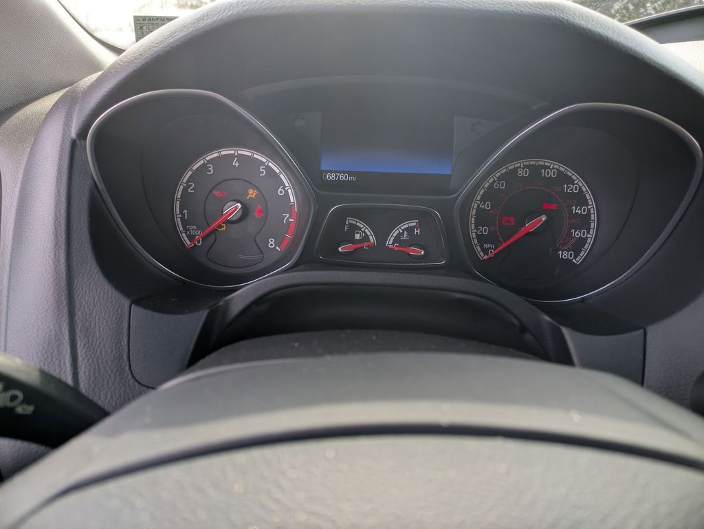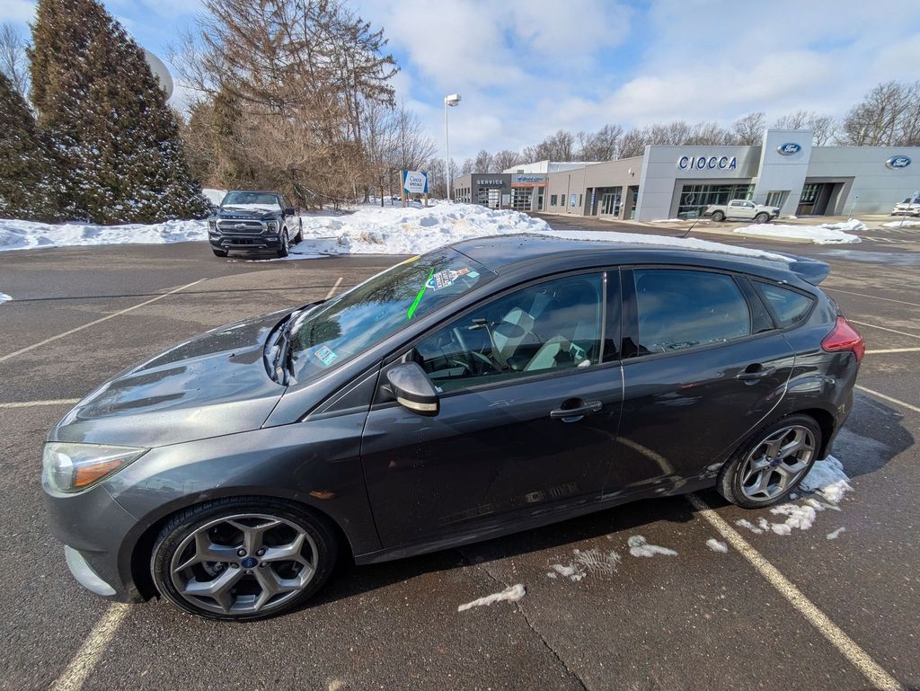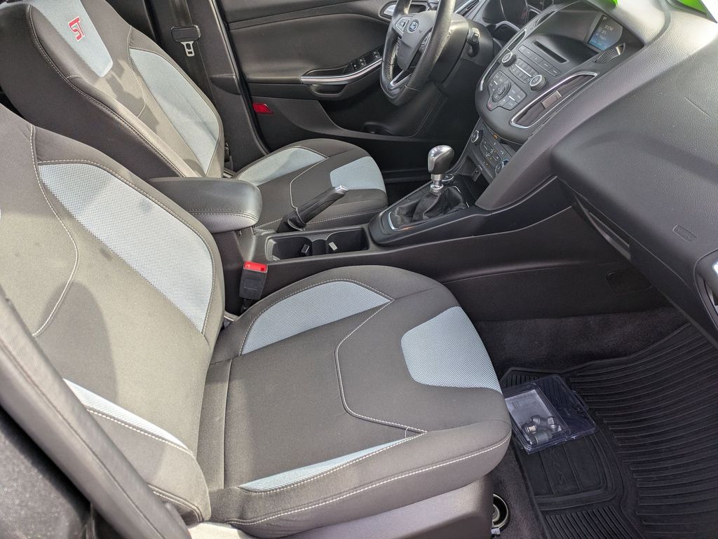 4-Wheel Disc Brakes, 6 Speakers, ABS brakes, Air Conditioning, Alloy wheels, AM/FM radio, AM/FM/CD/MP3 Radio, Brake assist, Bumpers: body-color, CD player, Cloth Sport Seats w/Unique ST Logo, Compass, Delay-off headlights, Driver door bin, Driver vanity mirror, Dual front impact airbags, Dual front side impact airbags, Electronic Stability Control, Emergency communication system: 911 Assist, Equipment Group 400A, Exterior Parking Camera Rear, Four wheel independent suspension, Front anti-roll bar, Front Bucket Seats, Front Center Armrest, Front fog lights, Front reading lights, Fully automatic headlights, Illuminated entry, Knee airbag, Leather steering wheel, Low tire pressure warning, Occupant sensing airbag, Outside temperature display, Overhead airbag, Panic alarm, Passenger door bin, Passenger vanity mirror, Power door mirrors, Power steering, Power windows, Radio data system, Rear anti-roll bar, Rear window defroster, Rear window wiper, Remote keyless entry, Security system, Speed control, Split folding rear seat, Spoiler, Steering wheel mounted audio controls, SYNC Communications & Entertainment System, Tachometer, Telescoping steering wheel, Tilt steering wheel, Traction control, Trip computer, Turn signal indicator mirrors, Variably intermittent wipers, Wheels: 18" Rado Gray Alloy.