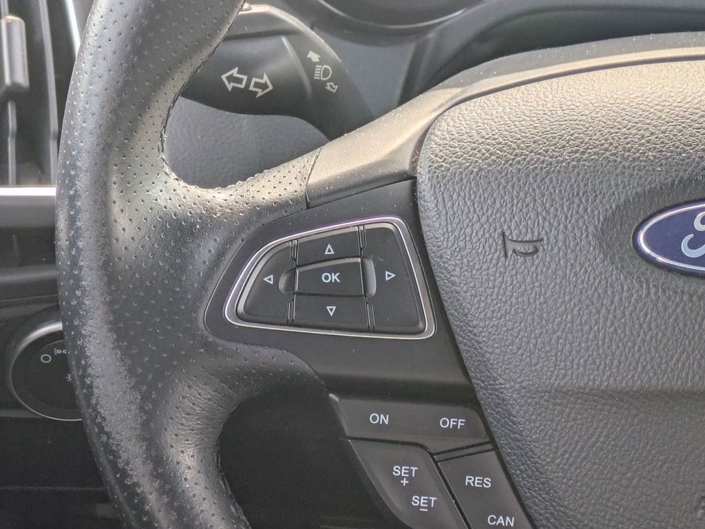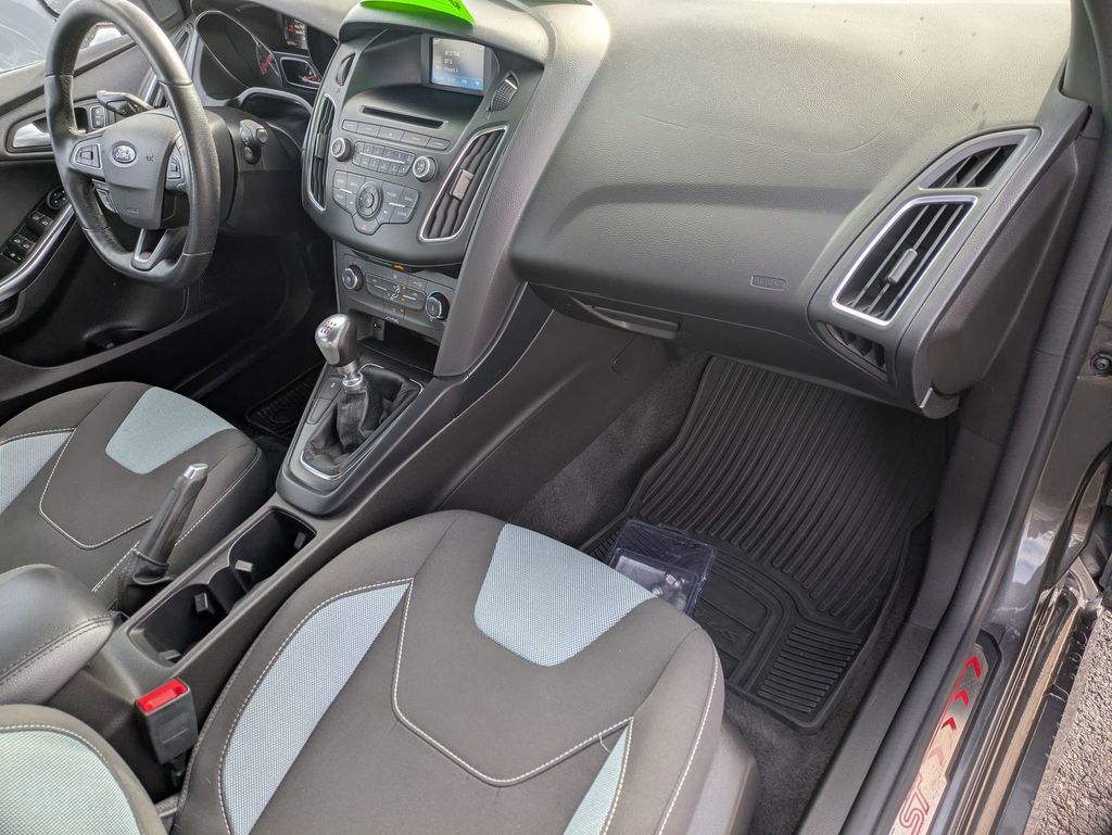 4-Wheel Disc Brakes, 6 Speakers, ABS brakes, Air Conditioning, Alloy wheels, AM/FM radio, AM/FM/CD/MP3 Radio, Brake assist, Bumpers: body-color, CD player, Cloth Sport Seats w/Unique ST Logo, Compass, Delay-off headlights, Driver door bin, Driver vanity mirror, Dual front impact airbags, Dual front side impact airbags, Electronic Stability Control, Emergency communication system: 911 Assist, Equipment Group 400A, Exterior Parking Camera Rear, Four wheel independent suspension, Front anti-roll bar, Front Bucket Seats, Front Center Armrest, Front fog lights, Front reading lights, Fully automatic headlights, Illuminated entry, Knee airbag, Leather steering wheel, Low tire pressure warning, Occupant sensing airbag, Outside temperature display, Overhead airbag, Panic alarm, Passenger door bin, Passenger vanity mirror, Power door mirrors, Power steering, Power windows, Radio data system, Rear anti-roll bar, Rear window defroster, Rear window wiper, Remote keyless entry, Security system, Speed control, Split folding rear seat, Spoiler, Steering wheel mounted audio controls, SYNC Communications & Entertainment System, Tachometer, Telescoping steering wheel, Tilt steering wheel, Traction control, Trip computer, Turn signal indicator mirrors, Variably intermittent wipers, Wheels: 18" Rado Gray Alloy.