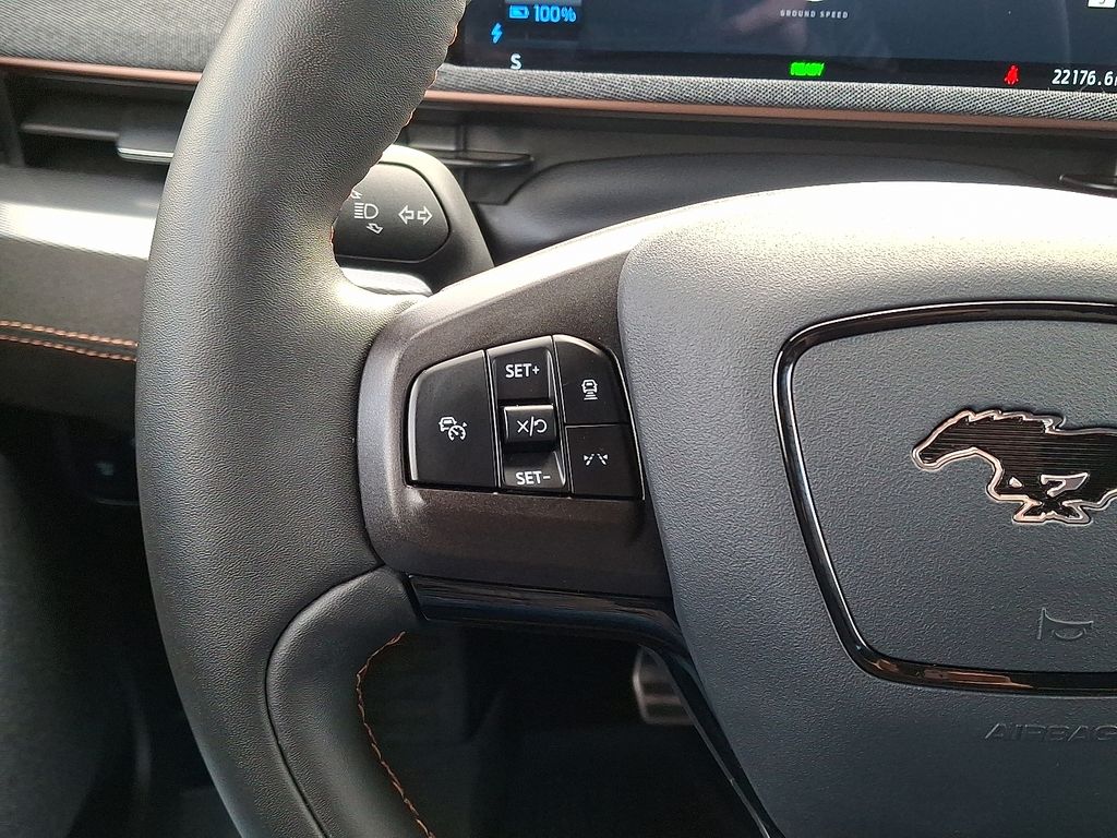 The interior of this Mustang Mach-E GT is equally impressive, with premium ActiveX Sport Seats, a heated steering wheel, and a host of advanced technologies at your fingertips. The SYNC 4A infotainment system with enhanced voice recognition ensures seamless connectivity and a user-friendly experience.