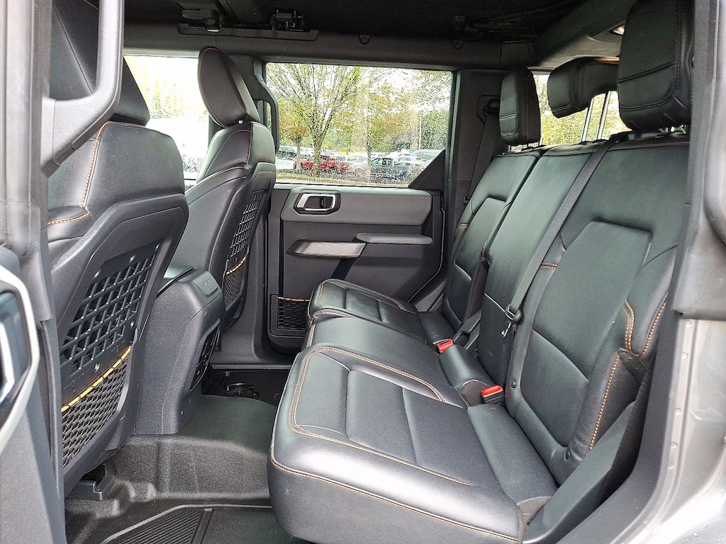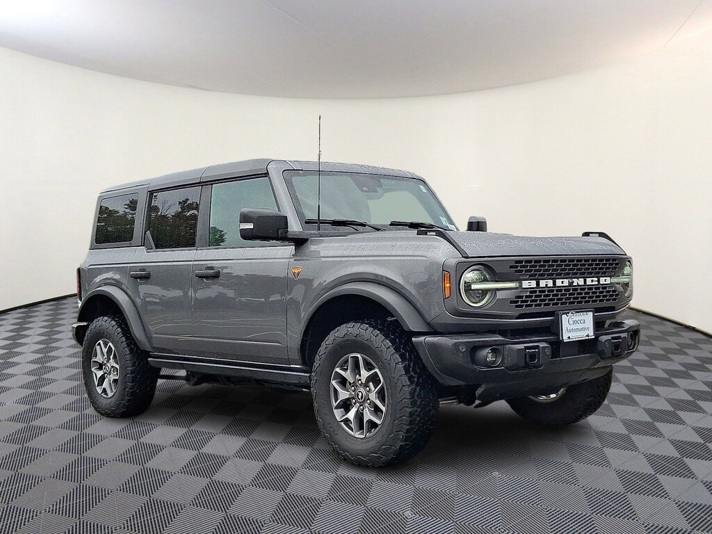 EQUIPMENT GROUP 334A LUX PACKAGE Rear Parking Sensors, Power Outlet - Back Side of Center Floor Console, Auto-Dimming Interior Rearview Mirror, Dr & Pass Illuminated Sliding Visor Vanity Mirrors, Evasive Steering Assist, Heated Steering Wheel, Additional Sound Deadening, Information on Demand Panel, Wireless Charging Pad, Dual-Zone Electronic Automatic Temperature Control, air conditioning, Ford Co-Pilot360, Enables compatibility w/FordPass performance app w/off-road navigation, Auto High-Beam Headlamps, Pre-Collision Assist w/Automatic Emergency Braking, pedestrian detection, forward collision warning and dynamic brake support, Blind Spot Information System (BLIS), Cross-Traffic Alert, Rear View Camera, backup assist grid lines, Lane-Keeping System, Lane-Keeping Alert, Lane-Keeping Aid, CARBONIZED GRAY MOLDED-IN-COLOR HARD TOP Rear-Window Defroster & Washer, Front Row Top Panels Storage Bag, For on-vehicle storage. Ford Badlands with Carbonized Gray exterior and Black Onyx interior features a 4 Cylinder Engine with 275 HP at 5700 RPM*.