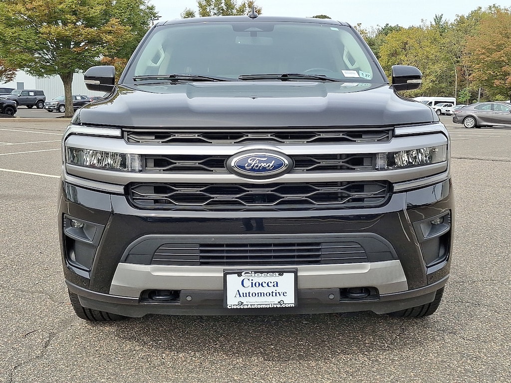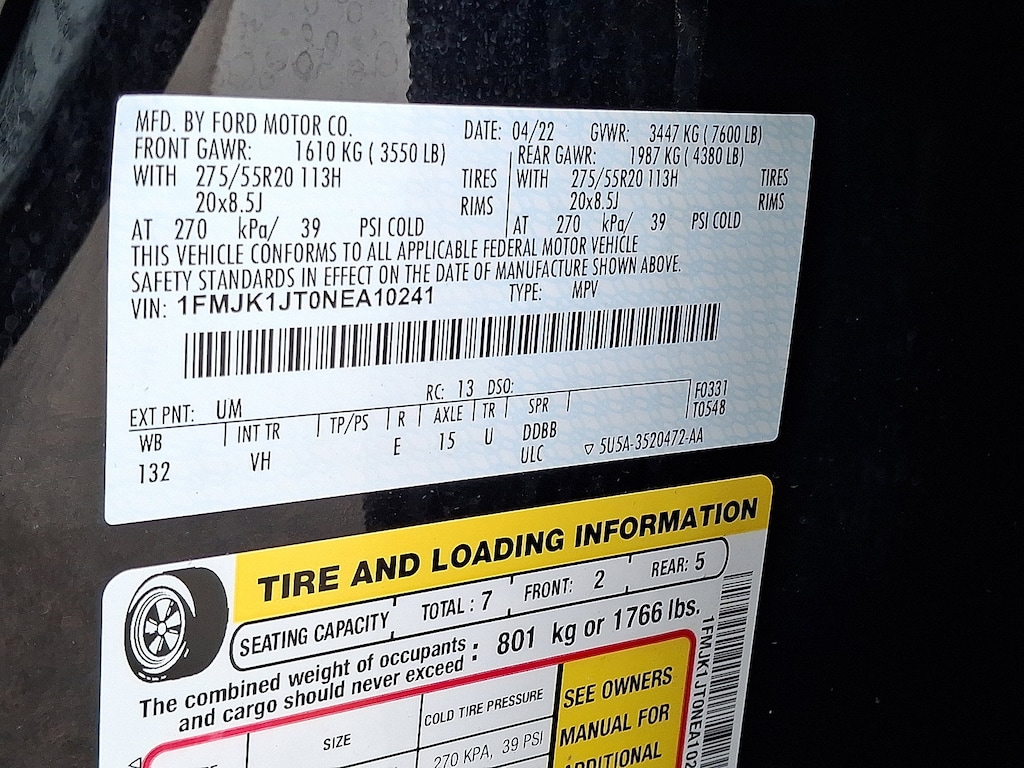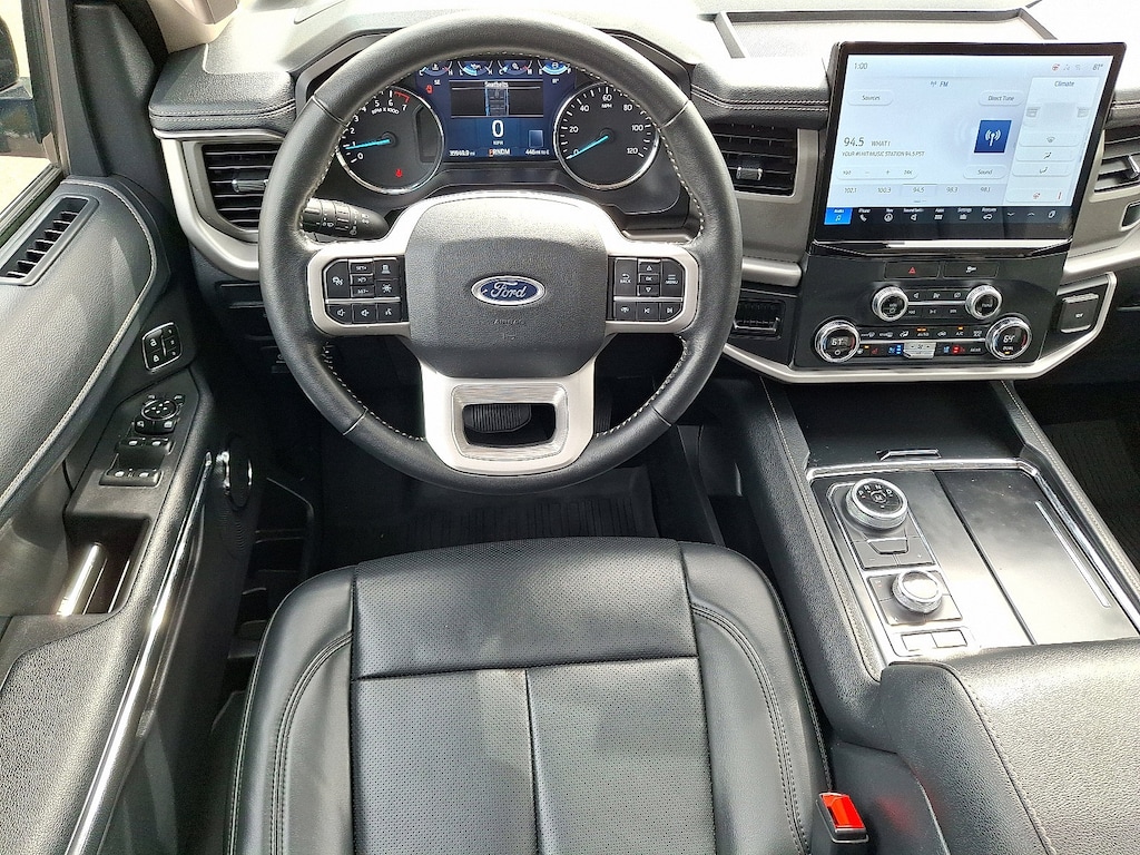 EQUIPMENT GROUP 202A HIGH PACKAGE Wireless Charging Pad, Located in media hub, Power Liftgate, 2nd Row Power-Folding Captains Chairs, armrests and tip-and-slide, Accent Color Painted Rear Bumper, Heated Steering Wheel, Heated/Ventilated Front Seats, 110V/150W AC Power Outlet, Power-Folding Sideview Mirrors w/Autofold, power and heated glass, turn signal indicators, security approach lamps, driver/passenger side memory, drivers side auto-dimming and body-color caps, 3rd Row Vinyl Power-Folding Head Restraints, power recline, 4-Door Intelligent Access (Lock/Unlock), Power-Adjustable Pedals w/Memory, Bright Chrome Plated Accent Platform Running Boards, SecuriCode Keyless Entry Keypad, Power Tilt/Telescopic Steering Wheel w/Memory, Ambient Lighting, Remote Start, Advanced Security Pack, SPECIAL EDITION PACKAGE Wheels: 20 Bright Machined Aluminum, Premium dark tarnish-painted, dark carbonized gray-painted pockets, Vinyl Center Console, Intersection Assist, pre-collision assist w/autonomous emergency braking, pedestrian detection, forward collision warning and dynamic brake support, LED Fog Lamps w/Accent Color Painted Bezel, LED Reflector Headlamps, signature lighting and bright bezel, Sideview Mirrors w/Turn Signal Indicators, Tires: P275/55R20 AS BSW, Ford Co-Pilot360 Assist+, Intelligent Adaptive Cruise Control, stop-and-go, lane centering assist and speed sign recognition, Front Parking Sensors, Evasive Steering, Connected Built-In Navigation, 3 years of service, pinch-to-zoom capability, live traffic, predictive destinations and route guidance, PANORAMIC VISTA ROOF power open/close w/power shade, BLACK ROOF-RAIL CROSSBARS, TRANSMISSION: 10-SPEED AUTOMATIC W/SELECTSHIFT (STD), ENGINE: 3.5L ECOBOOST V6 (STD). Ford XLT with Agate Black exterior and Black Onyx interior features a V6 Cylinder Engine with 380 HP at 5000 RPM*.