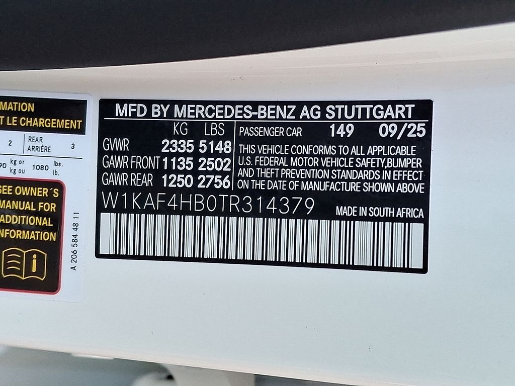 4MATIC®, 11.9" Center Touchscreen Display, 4-Wheel Disc Brakes, 5 Speakers, ABS brakes, Air Conditioning, Alloy wheels, AM/FM radio: SiriusXM, Anti-whiplash front head restraints, Apple CarPlay®/Android Auto®, Auto High-beam Headlights, Auto tilt-away steering wheel, Auto-dimming door mirrors, Auto-dimming Rear-View mirror, Automatic temperature control, Black Fabric Headliner, Black Rubber All-Weather Front/Rear Floor Mats, Brake assist, Bumpers: body-color, Child-Seat-Sensing Airbag, Compass, Delay-off headlights, Driver door bin, Driver vanity mirror, Dual front impact airbags, Dual front side impact airbags, Electronic Stability Control, Emergency communication system: Mercedes-Benz Emergency Call Service, Exterior Parking Camera Rear, First Aid Kit, Four wheel independent suspension, Front anti-roll bar, Front Bucket Seats, Front Center Armrest, Front dual zone A/C, Front reading lights, Fully automatic headlights, Garage door transmitter: HomeLink, Genuine wood dashboard insert, GUARD 360, Head restraints memory, Heated door mirrors, Heated front seats, Heated Steering Wheel, Illuminated entry, Knee airbag, Leather steering wheel, Low tire pressure warning, MB-Tex Upholstery, Memory seat, Occupant sensing airbag, Outside temperature display, Overhead airbag, Overhead console, Panic alarm, Panorama Sunroof, Passenger door bin, Passenger vanity mirror, Piano Black Lacquer Center Console, Power adjustable front head restraints, Power door mirrors, Power driver seat, Power Heated Front Seats w/Memory, Power moonroof, Power passenger seat, Power steering, Power windows, Premium audio system: MBUX, Radio data system, Radio: FrontBass 5-Speaker Audio System, Rain sensing wipers, Rear anti-roll bar, Rear fog lights, Rear reading lights, Rear seat center armrest, Rear window defroster, Remote keyless entry, Security system, SiriusXM Satellite Radio, Speed control, Speed-sensing steering, Split folding rear seat, Steering wheel memory, Steering wheel mounted audio controls, Tachometer, Telescoping steering wheel, Tilt steering wheel, Traction control, Trip computer, Turn signal indicator mirrors, Variably intermittent wipers, Weather band radio, Wheels: 7.5J x 18" Fr & 8.5J x 18" Rr 5-Spoke, Wheels: 7.5J x 18" Fr & 8.5J x 18" Rr Multispoke, 4MATIC®.