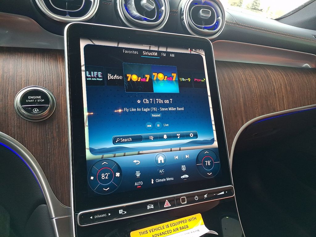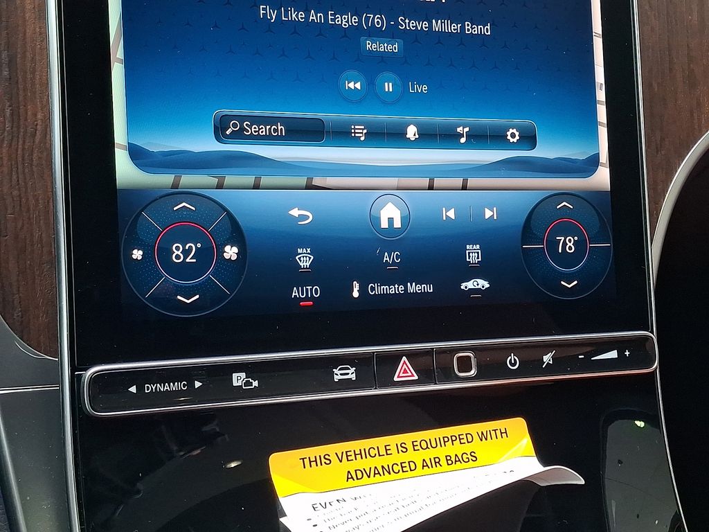 11.9" Center Touchscreen Display, 16-Way Power Front Seats w/Memory & Lumbar, 4-Wheel Disc Brakes, 5G Communication Module, 8 Speakers, ABS brakes, Air Conditioning, Alloy wheels, AM/FM radio: SiriusXM, Apple CarPlay®/Android Auto®, Auto High-beam Headlights, Auto tilt-away steering wheel, Auto-dimming door mirrors, Auto-dimming Rear-View mirror, Automatic temperature control, Brake assist, Bumpers: body-color, Child-Seat-Sensing Airbag, Compass, Delay-off headlights, Driver door bin, Driver vanity mirror, Dual front impact airbags, Dual front side impact airbags, Electronic Stability Control, Emergency communication system: eCall Emergency System, Exterior Parking Camera Rear, Four wheel independent suspension, Front anti-roll bar, Front Bucket Seats, Front Center Armrest, Front dual zone A/C, Front reading lights, Fully automatic headlights, Garage door transmitter: HomeLink, Genuine wood dashboard insert, Head restraints memory, Heated door mirrors, Heated Front Bucket Seats, Heated front seats, Illuminated entry, Knee airbag, Leather steering wheel, Low tire pressure warning, MB-Tex Upholstery, Memory seat, Navigation system: MB Navigation, Occupant sensing airbag, Outside temperature display, Overhead airbag, Overhead console, Panic alarm, Passenger door bin, Passenger vanity mirror, Power adjustable front head restraints, Power door mirrors, Power driver seat, Power Liftgate, Power moonroof: Panoramic, Power passenger seat, Power steering, Power windows, Premium audio system: MBUX, Radio data system, Radio: 3rd Generation MBUX, Rain sensing wipers, Rear anti-roll bar, Rear fog lights, Rear reading lights, Rear seat center armrest, Rear window defroster, Remote keyless entry, Security system, SiriusXM Satellite Radio, Speed control, Speed-sensing steering, Split folding rear seat, Steering wheel memory, Steering wheel mounted audio controls, Steering Wheel Shift Paddles, Tachometer, Telescoping steering wheel, Tilt steering wheel, Traction control, Trip computer, Turn signal indicator mirrors, Variably intermittent wipers, Wheels: 8J x 19" Multispoke, Wireless Android Auto®, Wireless Apple CarPlay®.