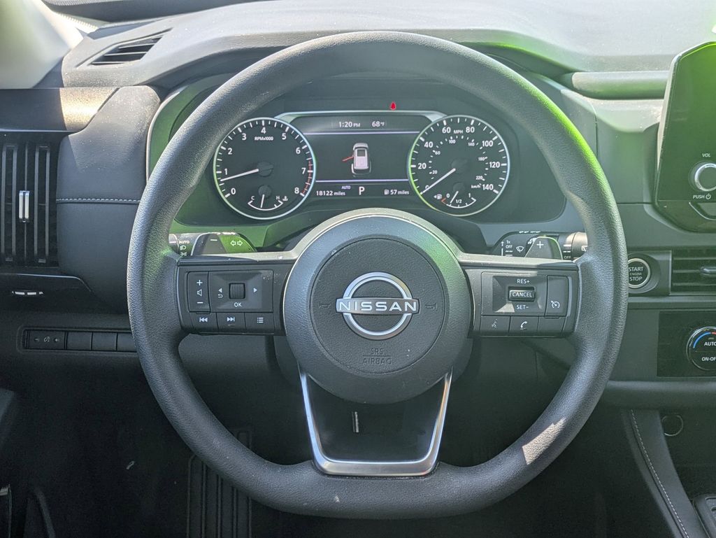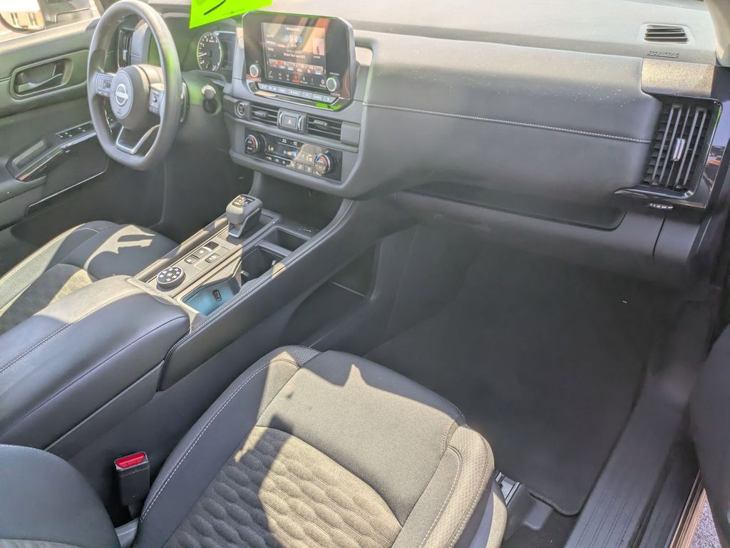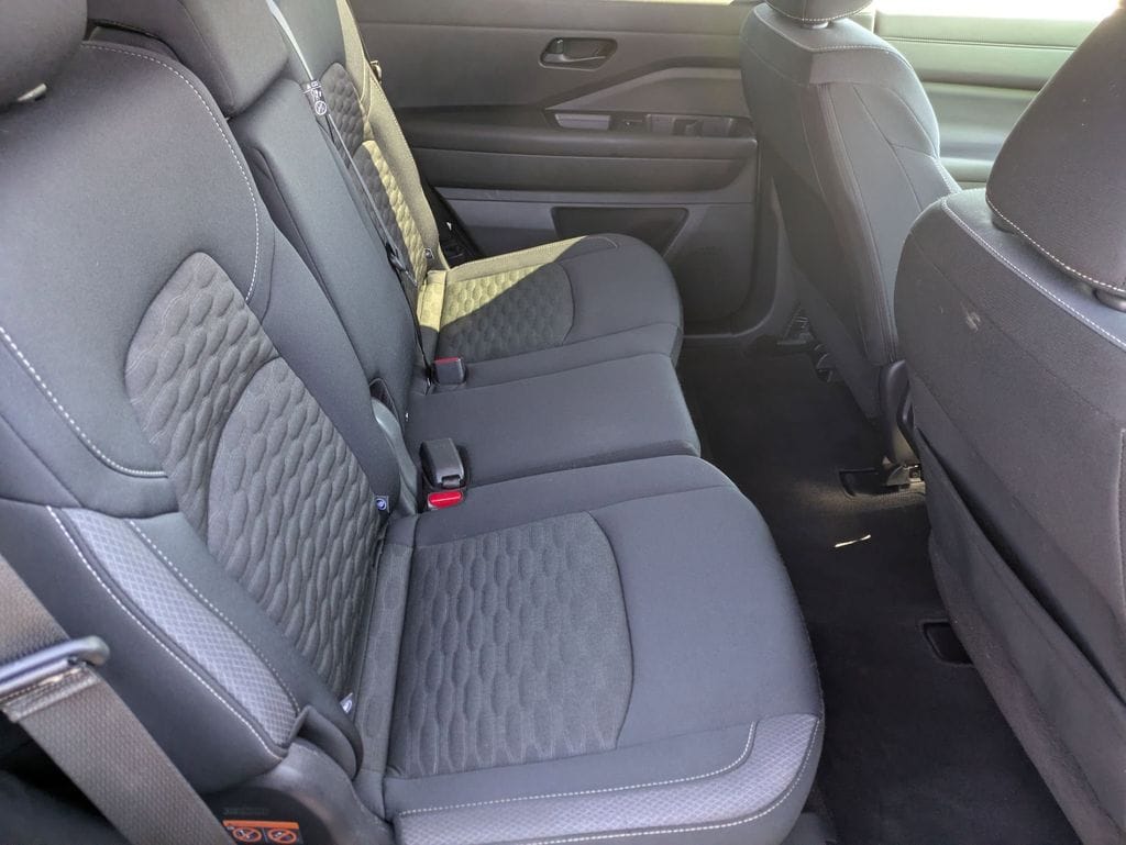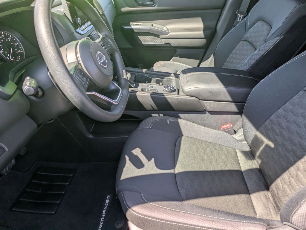 Step inside the Pathfinder S and experience the perfect balance of comfort and functionality. The spacious cabin features a Cloth Seating Surfaces, Front Bucket Seats, and a Front Center Armrest, providing a comfortable and supportive ride for you and your passengers. The Split folding rear seat and Reclining 3rd row seat offer versatile seating options, allowing you to accommodate your cargo and passengers with ease.