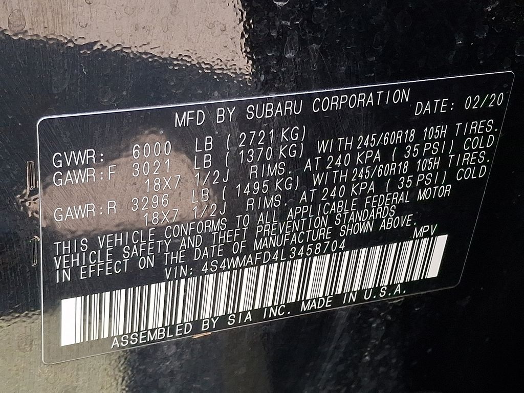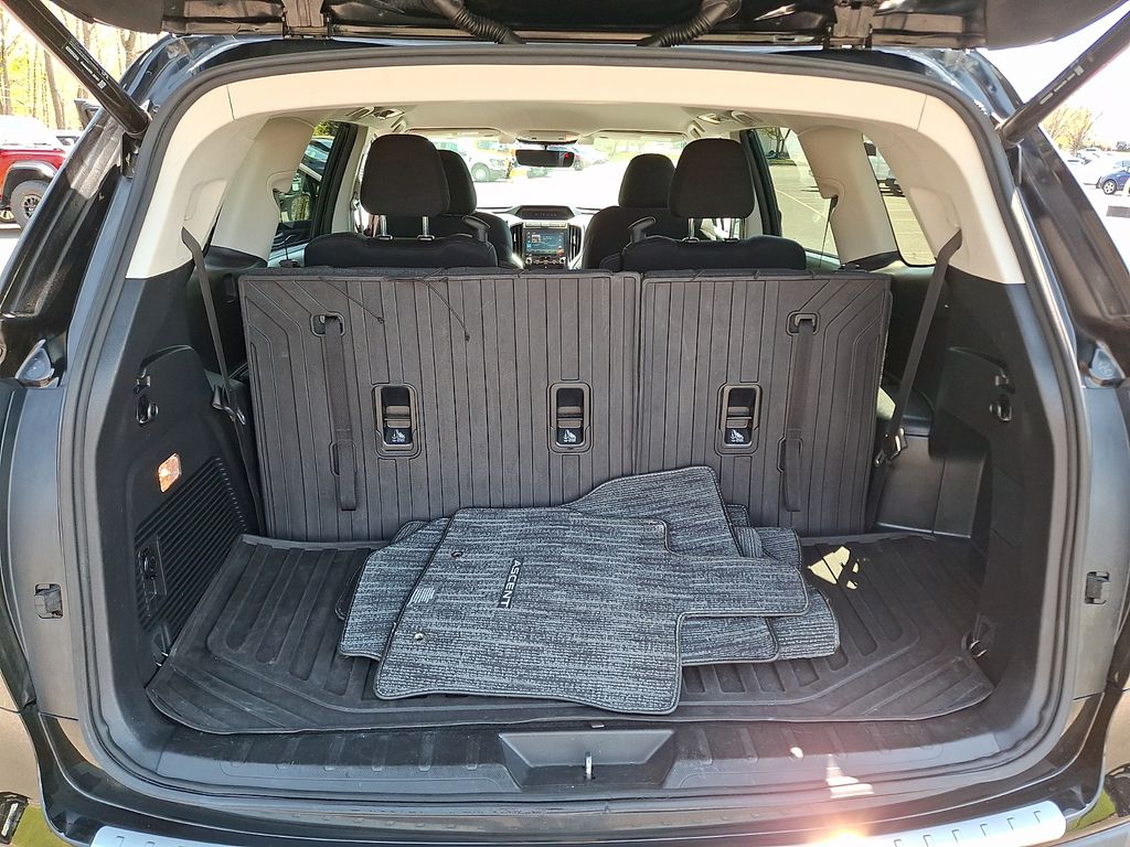 3rd row seats: bench, 4-Wheel Disc Brakes, 6 Speakers, ABS brakes, Air Conditioning, All-Weather Floor Liners, Alloy wheels, AM/FM radio: SiriusXM, Auto-Dimming Exterior Mirror w/Approach Light, Auto-Dimming Rear View Compass Mirror w/HomeLink, Automatic temperature control, Axle Ratio: 4.44, Brake assist, Bumpers: body-color, Cargo Tray, CD player, Convenience Package, Delay-off headlights, Driver door bin, Driver vanity mirror, Dual front impact airbags, Dual front side impact airbags, Electronic Stability Control, Emergency communication system: STARLINK Safety and Security (Subscription Required), Exterior Parking Camera Rear, Four wheel independent suspension, Front anti-roll bar, Front Bucket Seats, Front Center Armrest, Front dual zone A/C, Front reading lights, Fully automatic headlights, Heated door mirrors, Heated Front Bucket Seats, Heated front seats, Illuminated entry, Keyless Access w/Push-Button Start, Knee airbag, Low tire pressure warning, Occupant sensing airbag, Outside temperature display, Overhead airbag, Overhead console, Panic alarm, Passenger door bin, Passenger vanity mirror, Power door mirrors, Power driver seat, Power Rear Gate w/Automatic Close & Height Memory, Power steering, Power windows, Radio data system, Radio: Subaru STARLINK 8.0" Multimedia Plus System, Rear air conditioning, Rear anti-roll bar, Rear Bumper Cover, Rear reading lights, Rear Seatback Protector, Rear window defroster, Rear window wiper, Reclining 3rd row seat, Remote keyless entry, Reverse Automatic Braking (RAB) System, Security system, Speed control, Spill Resistant Cloth Upholstery, Splash Guards, Split folding rear seat, Spoiler, STARLINK/Apple CarPlay/Android Auto, Steering wheel mounted audio controls, Tachometer, Telescoping steering wheel, Tilt steering wheel, Traction control, Trip computer, Variably intermittent wipers, Wheels: 18" Gray Aluminum Alloy w/Machine Finish.