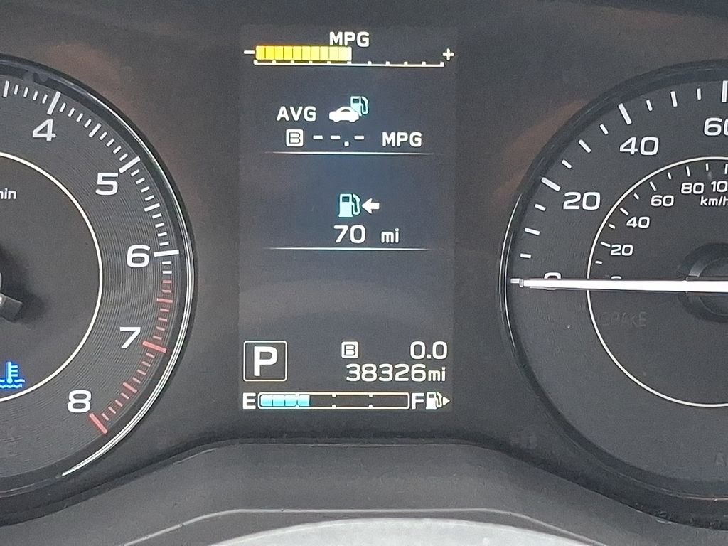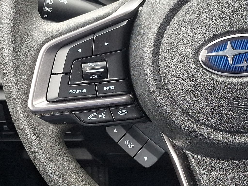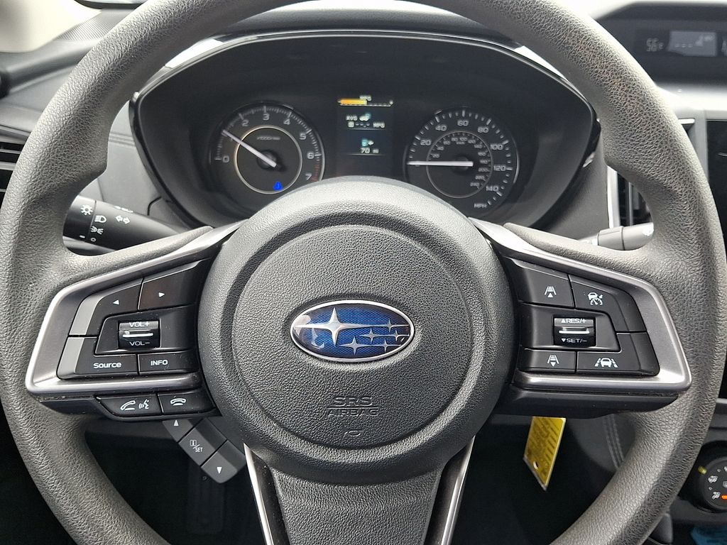 4 Speakers, 4-Wheel Disc Brakes, ABS brakes, Air Conditioning, All-Weather Floor Liners, AM/FM radio, Anti-whiplash front head restraints, Auto-Dimming Mirror w/Compass & HomeLink, Brake assist, Bumpers: body-color, Cargo Net, Cargo Tray, Cloth Upholstery, Driver door bin, Driver vanity mirror, Dual front impact airbags, Dual front side impact airbags, Electronic Stability Control, Exterior Parking Camera Rear, EyeSight System, Fixed Crossbar Set, Four wheel independent suspension, Front anti-roll bar, Front Bucket Seats, Front Center Armrest, Front reading lights, High Grade Combination Meter w/Color LCD Display, Illuminated entry, Knee airbag, Low tire pressure warning, Map & Dome Lights LED Upgrade, Occupant sensing airbag, Outside temperature display, Overhead airbag, Overhead console, Overhead Console Shower Light, Panic alarm, Passenger door bin, Passenger vanity mirror, Power door mirrors, Power steering, Power windows, Radio data system, Radio: Subaru STARLINK 6.5" Multimedia System, Rear Bumper Applique, Rear Seat Reminder, Rear window defroster, Remote keyless entry, Security system, Speed control, Speed-sensing steering, Splash Guards, Split folding rear seat, Standard Model w/CVT, STARLINK/Apple CarPlay/Android Auto, Steering wheel mounted audio controls, Tachometer, Telescoping steering wheel, Tilt steering wheel, Tire Pressure Monitoring System, Traction control, Trip computer, Variably intermittent wipers, Wheels: 16" x 6.5" Black Finish J Steel.